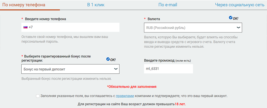 — «По e-mail» - после ввода необходимых данных, рядом с пунктом Правила букмекерской конторы поставить отметку в виде галочки