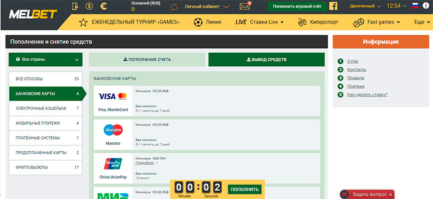 Если официальный сайт melbet.com не доступен, можно перейти на сайт-зеркало, актуальное на сегодня.